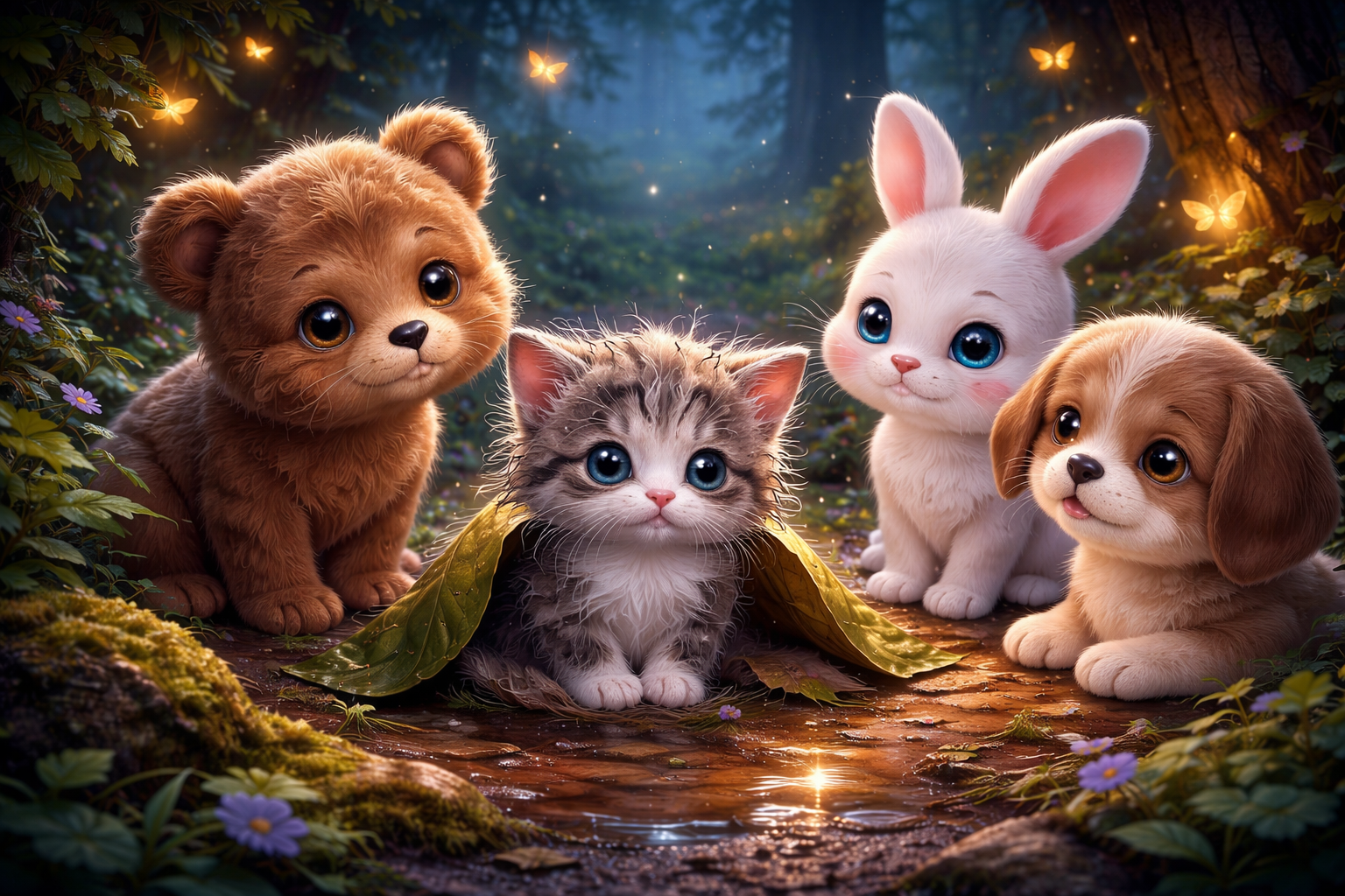 Luna ging naast het poesje zitten.