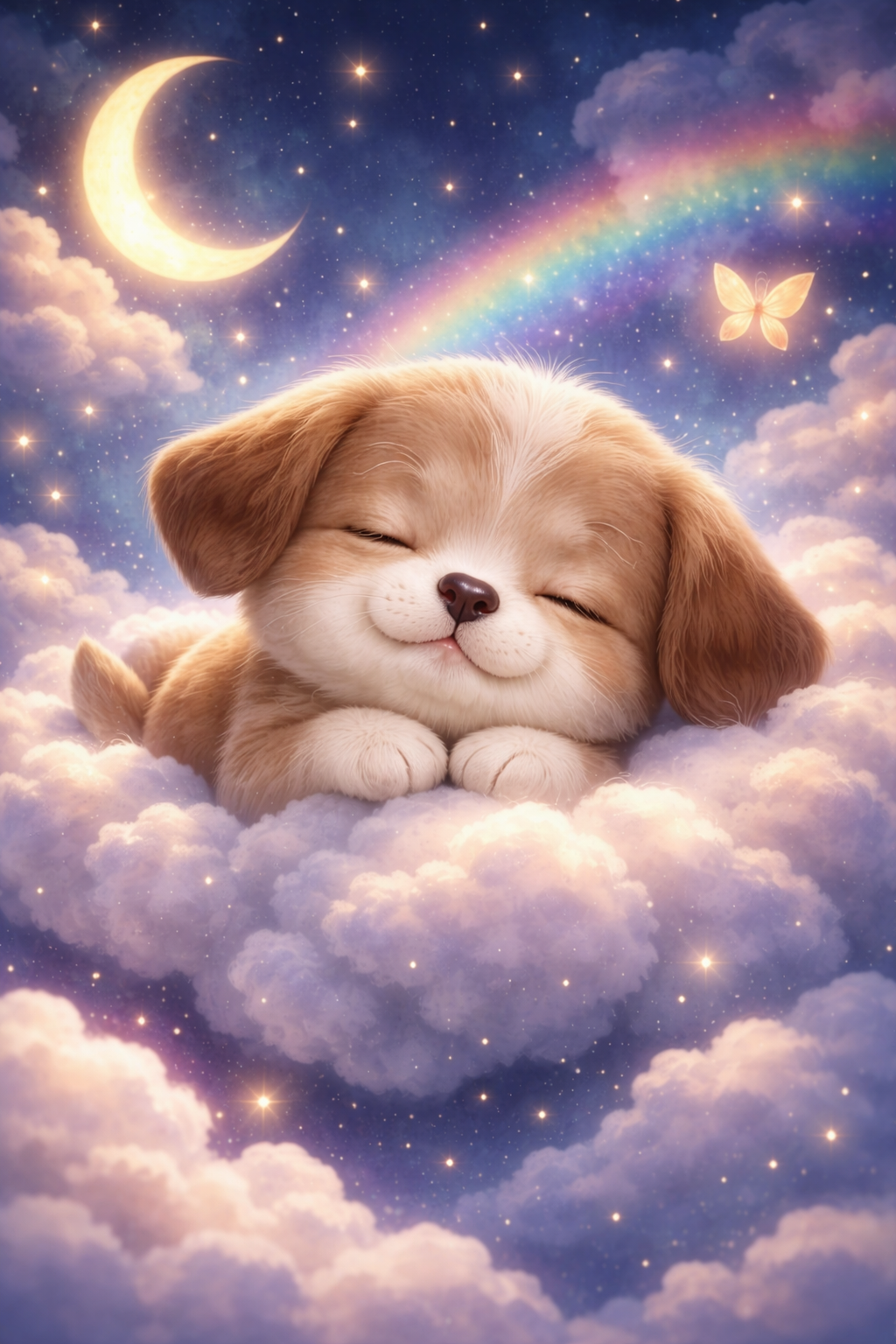 Langzaam sloot Binky zijn ogen… en ineens rende hij door een veld vol lichtjes.