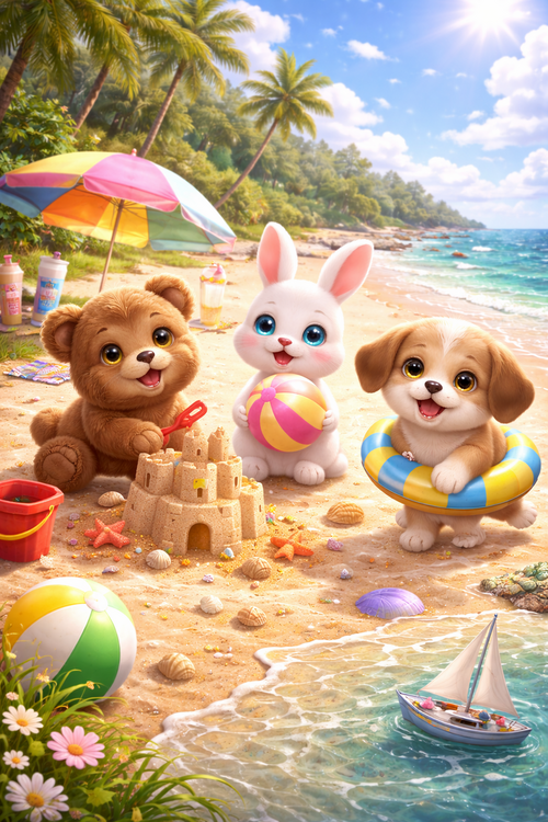 Na een wandeling door het bos kwamen Milo, Luna en Binky ineens bij een prachtig strand.